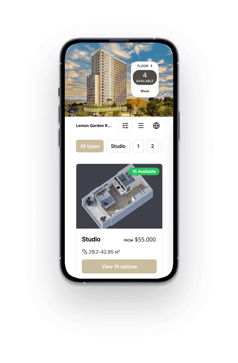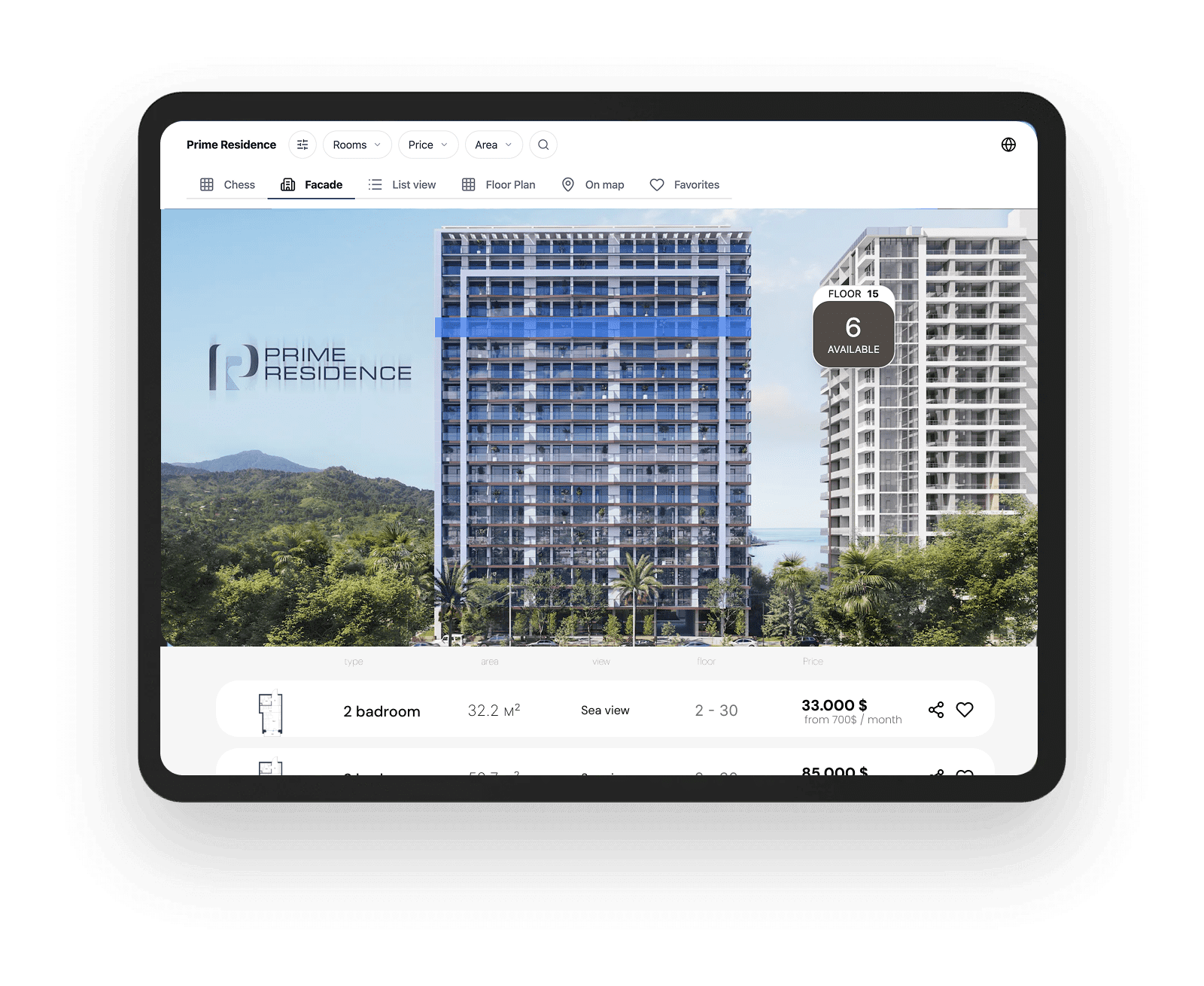 Средний рост конверсии благодаря интерактивному выбору лотов на сайте.